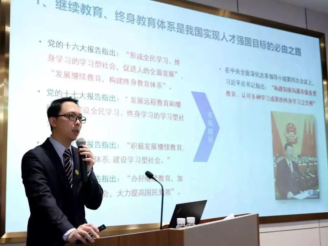 会议首先由国家开放大学学分银行(学习成果认证中心)常务副主任鄢小平从学习成果框架与学分银行的概念、学分银行理论研究成果、基础建设进展、实践应用推广等方面详细介绍了国家开放大学学分银行建设进展和成果。