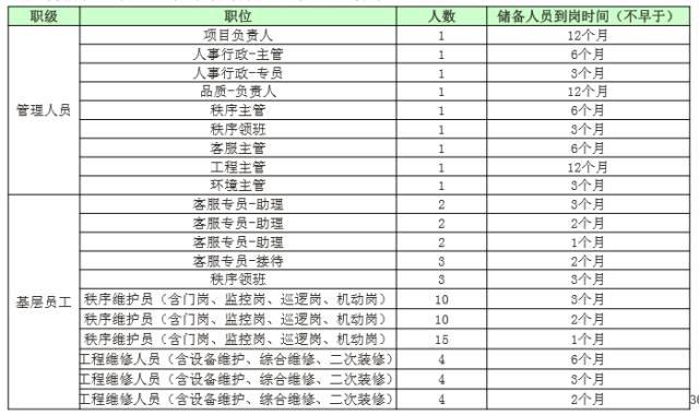 人力资源岗:城市物业公司按照公司总人数的1/150配置,公司总人数中不含外包人员。