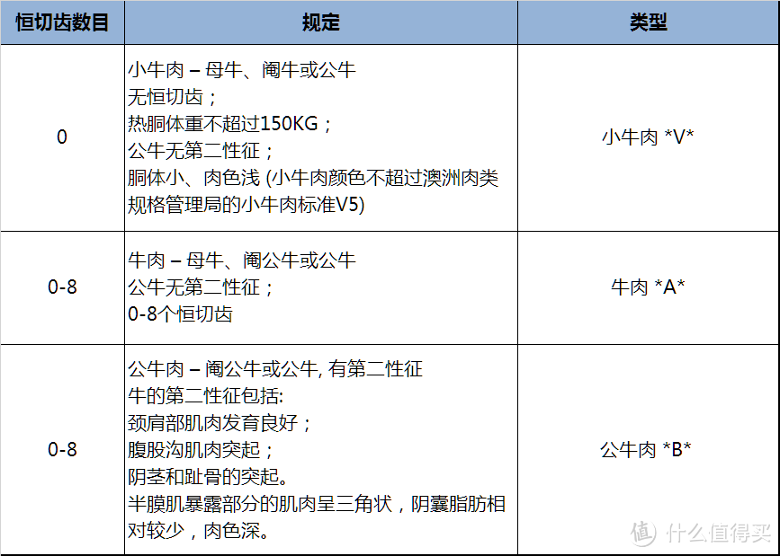 粗略分法,澳洲牛肉最基本的分级是:小牛肉、牛肉和公牛肉,分别是V、A与B级。